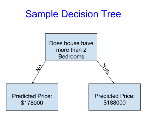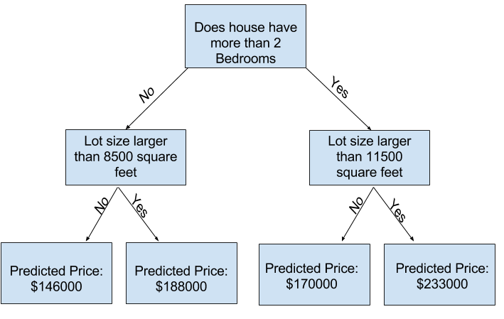 Es prediu el preu de qualsevol casa rastrejant l'arbre de decisió, sempre escollint el camí corresponent a les característiques d'aquesta casa. El preu previst per a la casa és a la part inferior de l'arbre. El punt de la part inferior on fem una predicció s'anomena fulla.