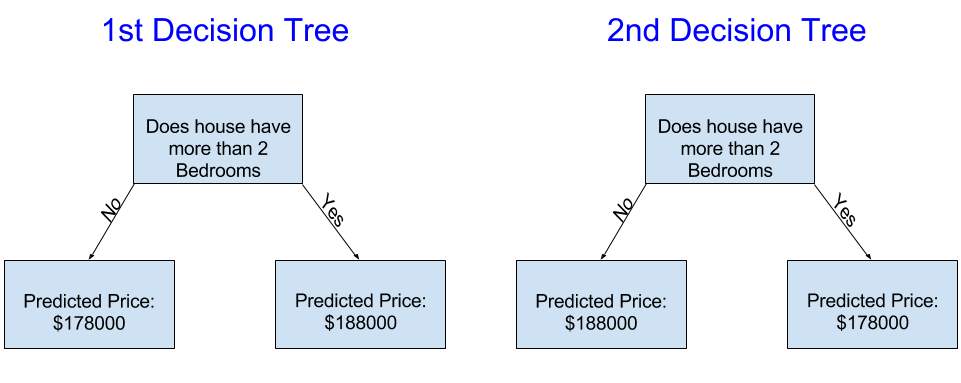 L'arbre de decisions de l'esquerra (Arbre de decisions 1) probablement té més sentit, perquè recull la realitat que les cases amb més habitacions solen vendre's a preus més alts que les cases amb menys habitacions. El major inconvenient d'aquest model és que no recull la majoria dels factors que afecten el preu de l'habitatge, com ara el nombre de banys, la mida de l'habitatge, la ubicació, etc.